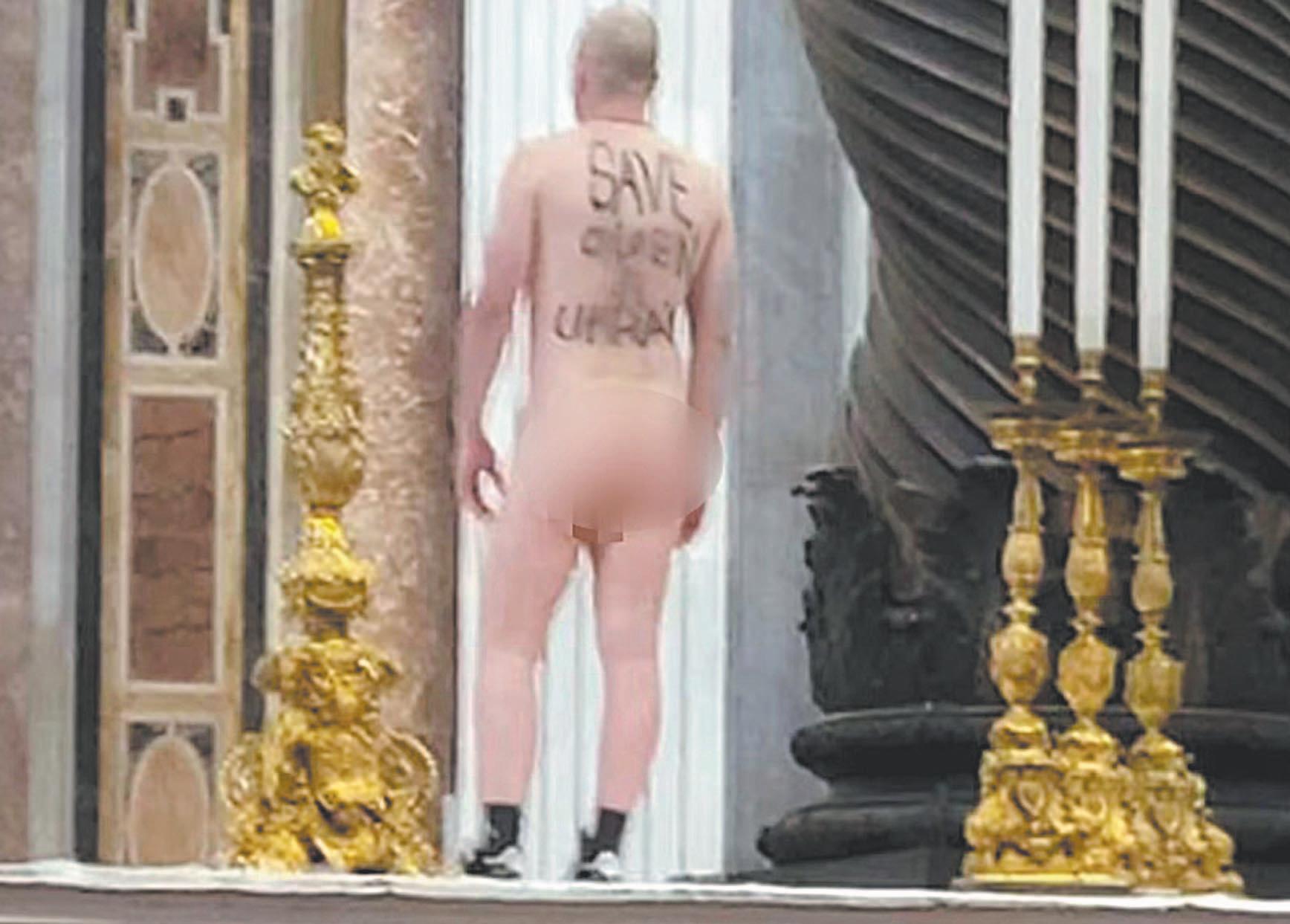 Según Vatican News, un hombre polaco calvo se entró en el templo a la hora del cierre, se desnudó y saltó subió el altar.