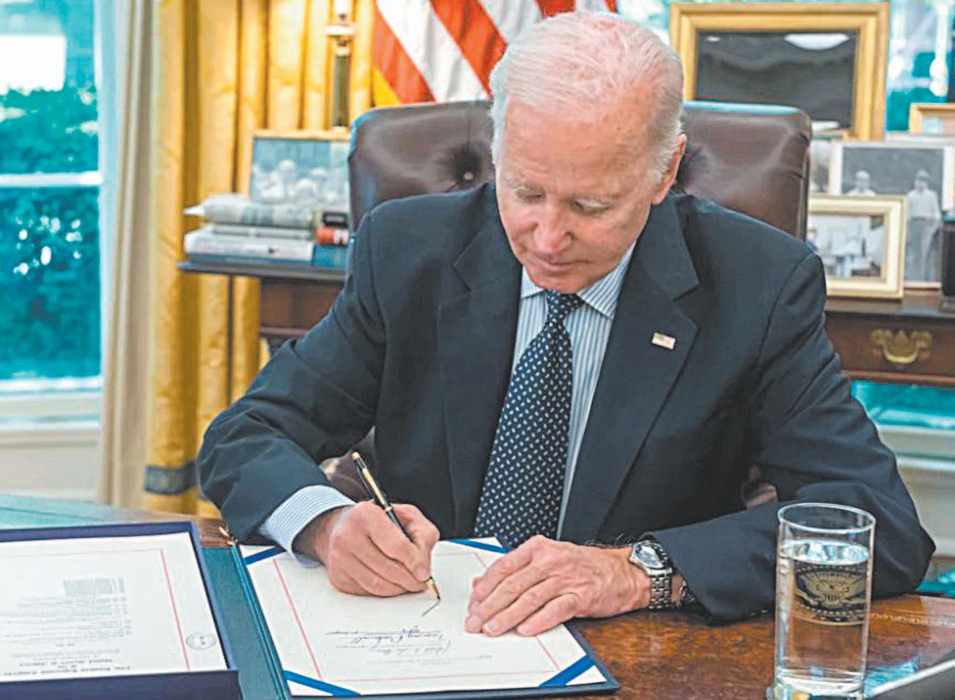 JOE BIDEN PRESIDENTE EE.UU.La Casa Blanca anunció la rúbrica, realizada en privado en la Casa Blanca, en un comunicado enviado por correo electrónico en el que Biden agradeció a los líderes del Congreso por su colaboración.