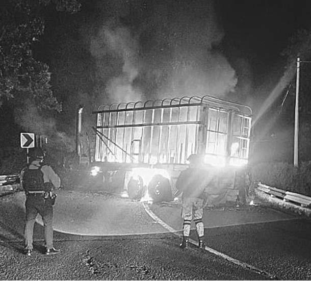 Además, un tractocamión fue atravesado e incendiado sobre uno de los sentidos de la