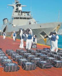 ACAPULCO, Gro.- En un exitoso operativo resultado de la estrategia coordinada entre las Fuerzas federales y estatales, elementos de la Guardia Costera de la Secretaría de Marina incautaron aproximadamente 3.6 toneladas de presunta cocaína y detuvieron a nueve presuntos transgresores de la Ley en aguas del Pacífico a 133 millas náuticas (214 kilómetros) al Sureste de Acapulco, Guerrero.