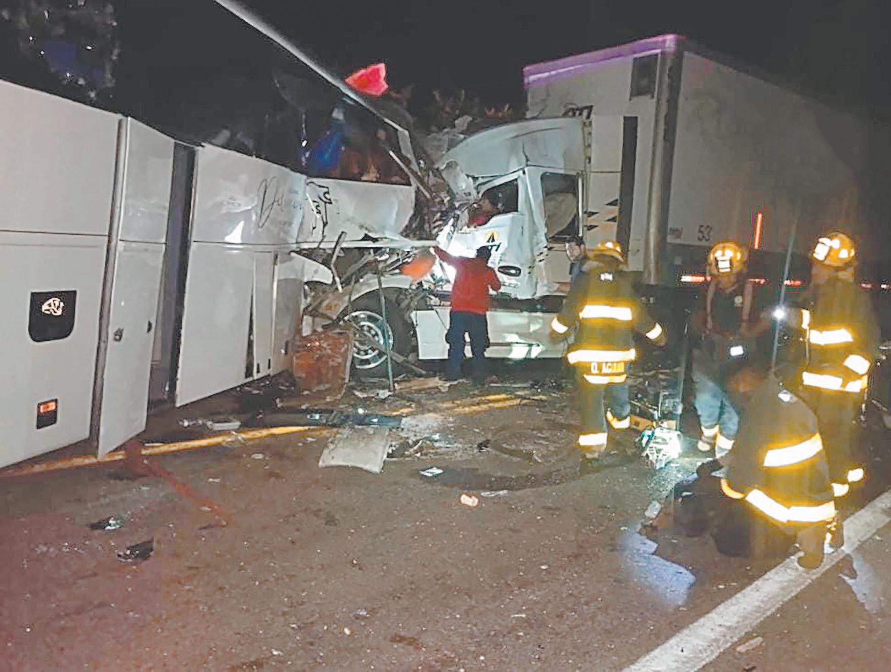 Choque entre autobús, tráiler y camión de carga deja cinco muertos