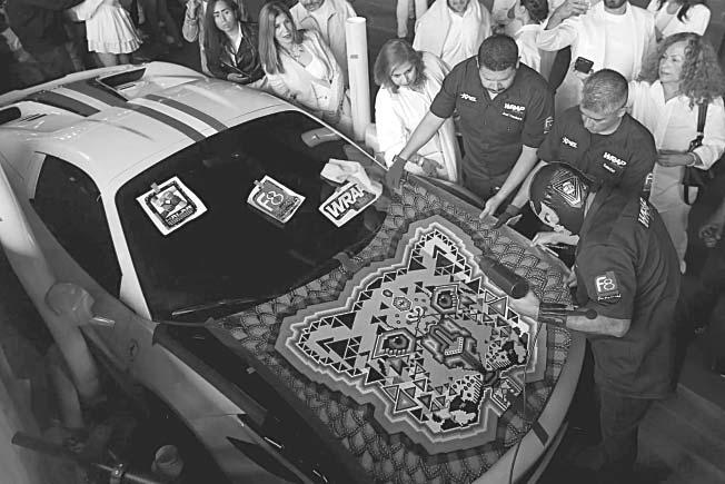 Un jaguar simulando la técnica de chaquira de la comunidad indígena wixárika, un diseño multicolor de caballo, un hombre con cabeza de pájaro, y diseños estilo grafi ti, fueron algunas de las intervenciones realizadas en los Ferrari a manos de los artistas que aprovecharon la noche