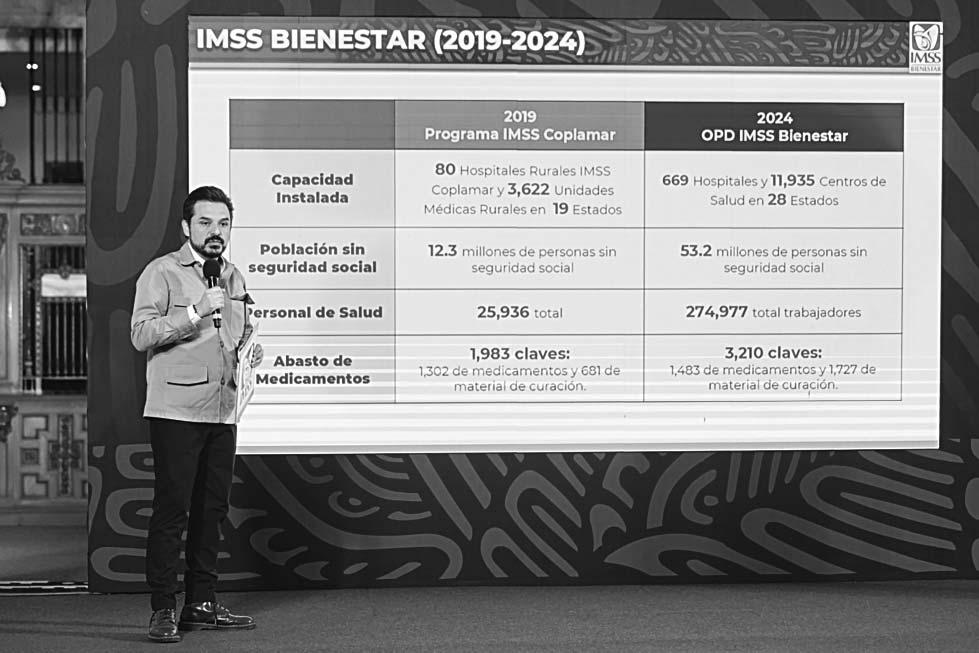 CIUDAD DE MÉXICO.- El programa IMSS Bienestar benefi en 23 estados a 53.2 millones de personas que representan el 80% de la población del país sin seguridad social, mientras que el 20% restante corresponde a habitantes de estados en los que sus Gobiernos rechazaron incorporarse al sistema de federalización, explicó ayer Zoé Robledo Aburto, director general del Instituto Mexicano del Seguro Social (IMSS).