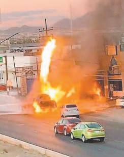 En una de las grabaciones se observa a ambos automóviles ardiendo y a pesar de los esfuerzos de los bomberos del lugar la llamarada se rehúsa a ceder, por el momento se desconoce si la zona fue evacuada.