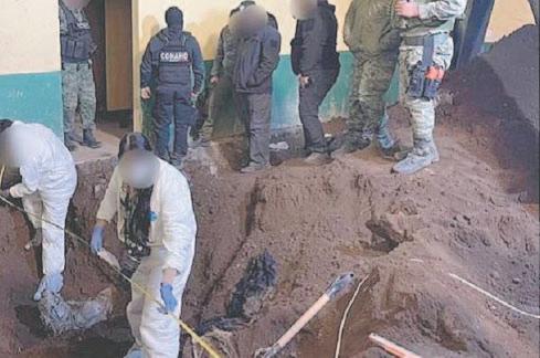 De acuerdo con fuentes cercanas a la investigación, en el lugar concluyeron con los trabajos de excavación y en el lugar también hallaron sustancias como cloro y creolina, cintas canela y plástico para emplaye.