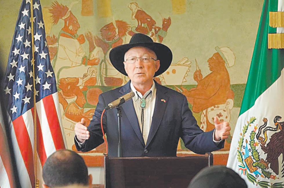 CIUDAD DE MÉXICO.- El embajador de Estados Unidos en México, Ken Salazar, ayer dijo que como parte de los acuerdos de autoridades de los dos países en materia de seguridad se acordó lanzar un plan de acción global contra el fentanilo que abarca a Europa y Centro América. En rueda de prensa en la residencia oficial del Embajador en la Ciudad de México, informó de las nueve acciones que acordaron ambos gobiernos para frenar también el tráfico de armas a México y des-