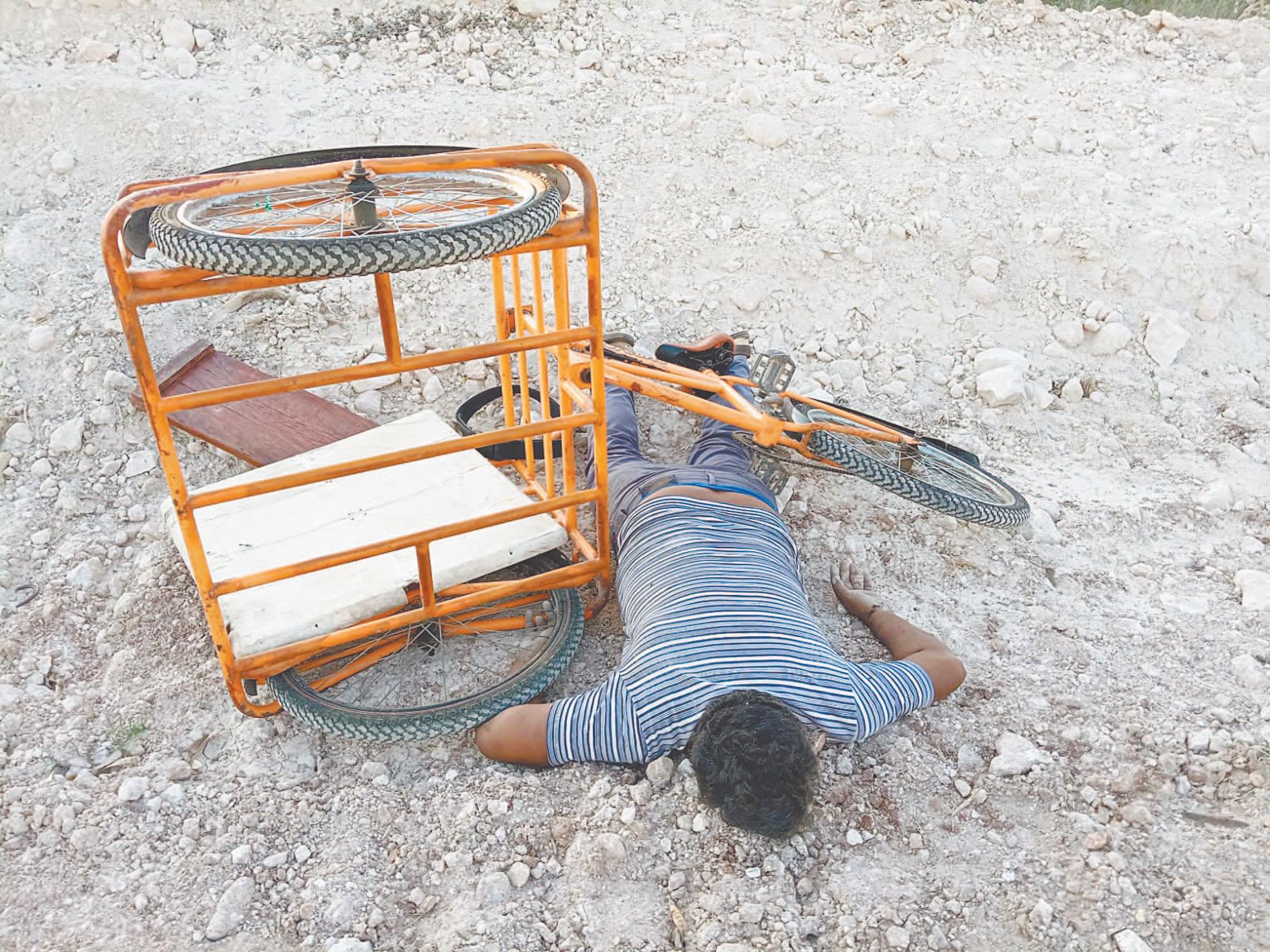 PARAMÉDICOS confirman que se trató de un infarto fulminante y policías descartan indicios de violencia. A través de una llamada anónima se atendió el reporte de una persona sin identificar tirada en la calle rumbo a la Hacienda La Chiripa.- (R. Jiménez/J. Caamal)
