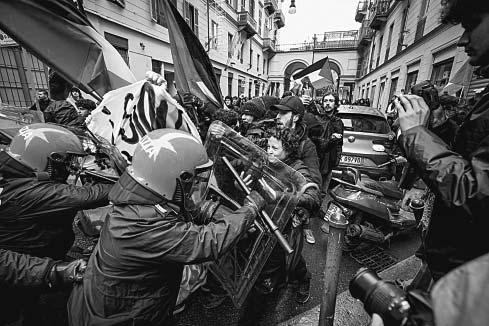Enfrentamiento entre policías y estudiantes en Turín, Italia