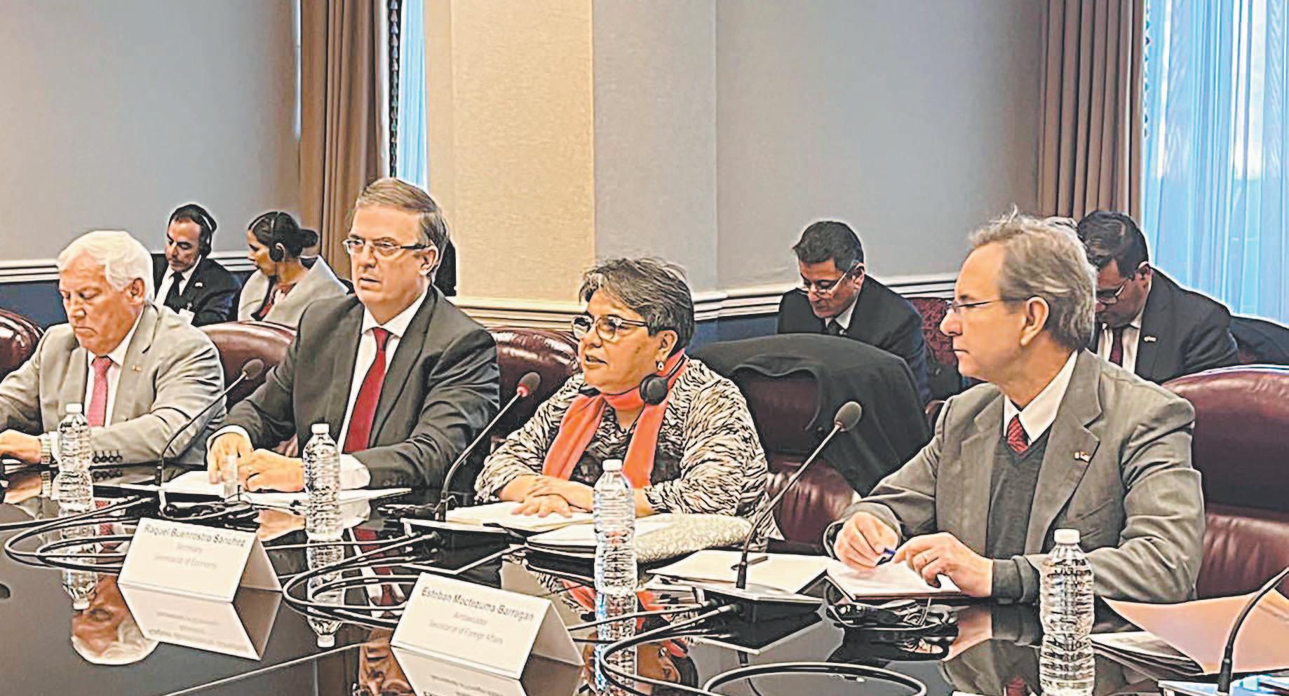La delegación mexicana estuvo compuesta por el secretario de Relaciones Exteriores, Marcelo Ebrard Casaubon; la secretaria de Economía, Raquel Buenrostro Sánchez; el secretario de Agricultura y Desarrollo Rural, Víctor Villalobos Arámbula, y el embajador de México en Estados Unidos, Esteban Moctezuma Barragán, entre otros funcionarios federales mexicanos. (Redacción POR ESTO!)