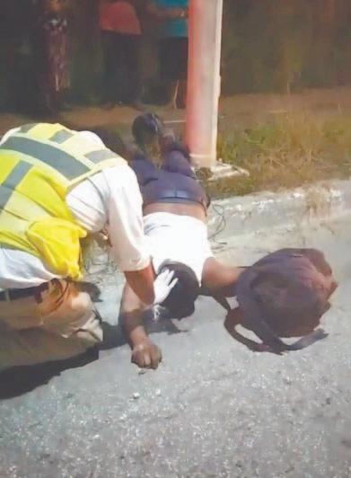 También en el mismo lugar, se informó que estaba otro hombre de aproximadamente 25 años de edad, de tez morena, de 1.60 metros de estatura, complexión delgada, cabello corto negro; con vestimenta pantalón de mezclilla, sudadera roja, cachucha color azul y tenis blancos.