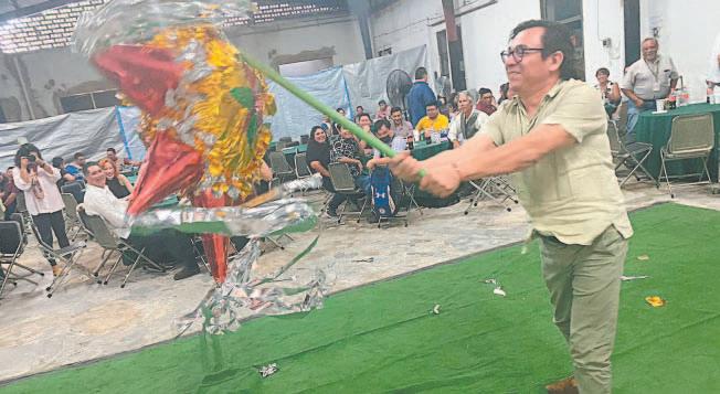 No podía faltar la piñata y la Directora Alicia Menéndez tomó la batuta al darle el primer golpe y estremecer con la fortaleza del periódico su tradicional forma de estrella de siete picos, para luego dar paso a los demás trabajadores que obtuvieron como premio cientos de dulces que brotaron de su interior.