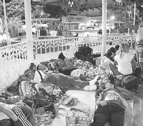 Las personas indocumentadas que pretenden llegar a los Estados Unidos, en su mayoría venezolanos, se encuentran durmiendo en la plaza del parque central Miguel Hidalgo, al aire libre