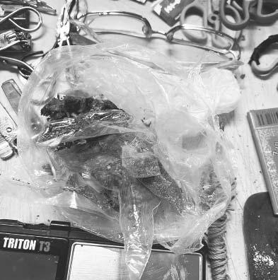 Al examinar minuciosamente la pieza que estaba emplayada, descubrieron cuatro bolsas de plástico ocultas en los huecos del accesorio; al abrirlas encontraron aproximadamente 23 mil pastillas de color azul con las características propias del fentanilo.