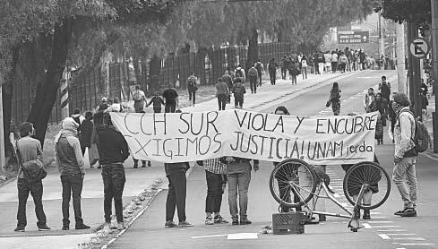 Poco después de las 14:20 horas los manifestantes -quienes previamente habían tomado la dirección de su facultad- se colocaron sobre dicha vialidad enarbolando una manta con la frase “CCH Sur viola y encubre. Exigimos justicia”.