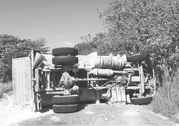 Vuelca unidad de volteo y cierra el paso por horas