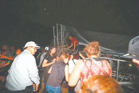 Videos compartidos en redes sociales por los asistentes muestran el preciso instante en que un fuerte viento comenzó a sacudir el escenario.