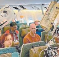 Según un pasajero, las personas a bordo del aparato fueron abalanzadas con tanta violencia que sus cabezas golpearon el techo, lo que causó graves lesiones a decenas de pasajeros. Fotografías tomadas en el avión muestran comida, botellas y equipaje por todo el suelo, así como máscaras de oxígeno colgando del techo. El avión, que transportaba a 211 pasajeros y 18 tripulantes, aterrizó de urgencia en Bangkok, donde los heridos fueron atendidos. (Agencias)