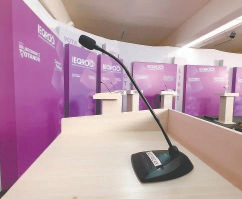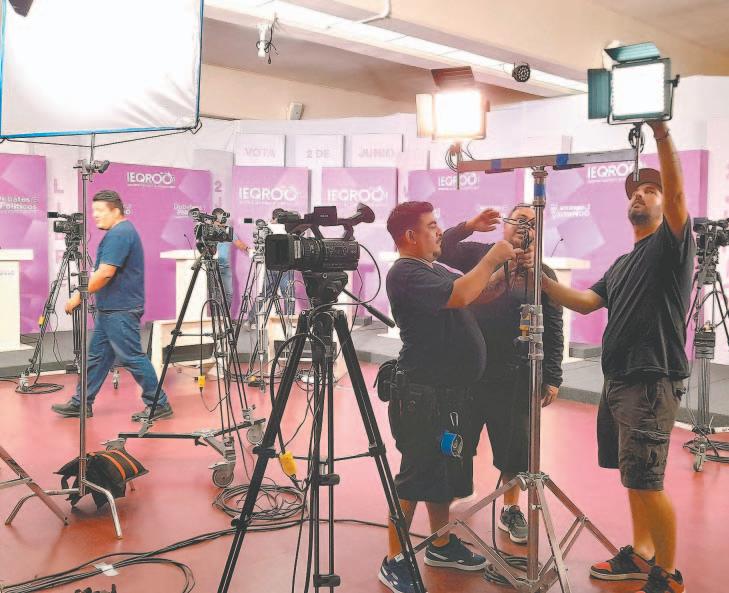 En las imágenes, se puede obser- var a los candidatos Jorge Álvarez Máynez, Martha Herrera y Lorenia Canavati corriendo para resguardarse, mientras la pantalla ubicada detrás de ellos se desplomaba.