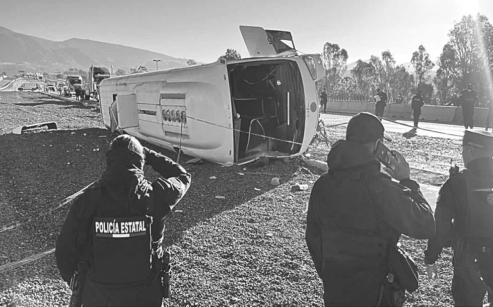 En un grupo de 51 peregrinos, al menos tres personas murieron y más de 20 resultaron heridas luego de que el autobús que los transportaba se quedara sin frenos y volcara sobre la autopista México-Puebla, informaron ayer autoridades estatales.