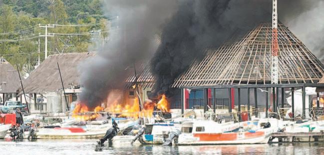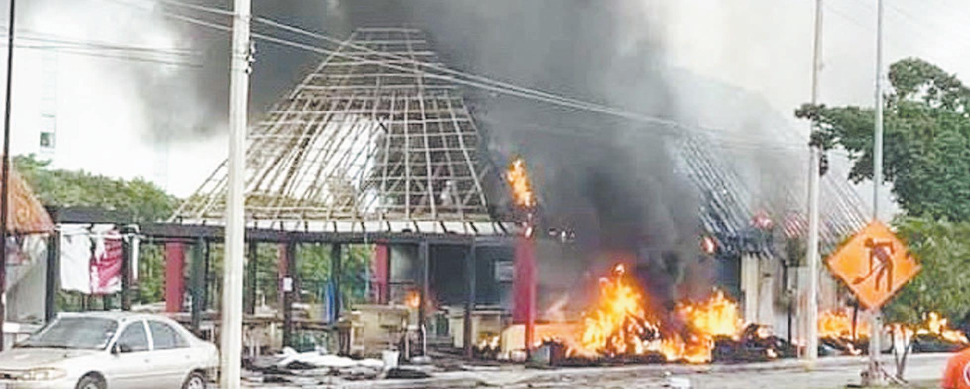 VECINOS, comerciantes y usuarios intentaron controlar el fuego en las palapas ubicadas sobre la avenida Gustavo Díaz Ordaz, pero las llamas se descontrolaron. Aunque las pérdidas económicas son millonarias, afortunadamente NO hubo lesionados; el guardia del lugar sufrió una crisis nerviosa.- (Alan Gómez)