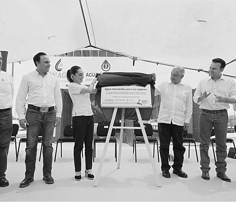 LERDO, Dgo.- La presidenta electa, Claudia Sheinbaum, se comprometió a dar continuidad al proyecto de Agua Saludable para la región de La Comarca Lagunera , y garantizar el abasto de agua de calidad para los municipios de Durango y Coahuila. Al acompañar al presidente Andrés Manuel López Obrador en la inauguración de la planta de bombeo en Lerdo, Durango, la próxima Mandataria federal, destacó que trabajará con los gobernadores de Durango, Esteban Villegas Villarreal, el gobernador de Coahuila, Manolo Jiménez Salinas, y con el sector empresarial, para terminar la tecnificación de riego, cambiar la red de agua potable, y garantizar la conducción y distribución del agua de calidad a los municipios de la región.