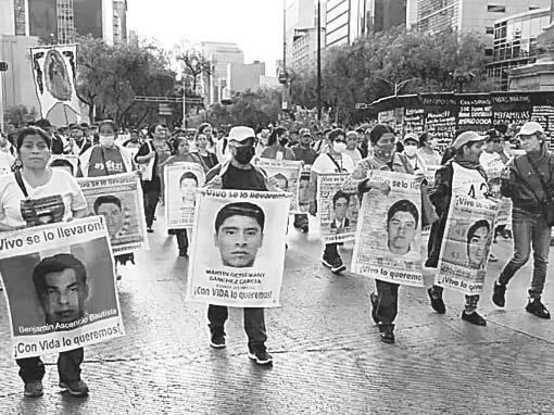 dres de familia de los 43 estudiantes desaparecidos de Ayotzinapa realizaron ayer una marcha exigiendo justicia y sobre todo, que se castigue a los responsables de las desapariciones, a 100 meses de la tragedia.