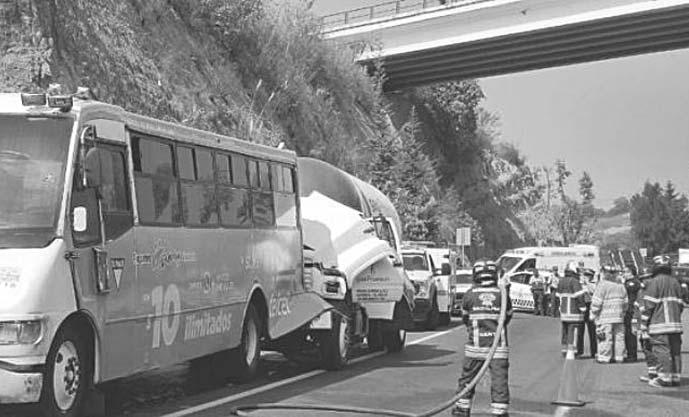 NAUCALPAN, Mex.- El choque registrado entre una pipa de gas y un autobús de pasajeros en la autopista de cuota Chamapa- Lechería, Estado de México, dejó un saldo preliminar de 11 personas lesionadas y un fallecido, reportaron ayer las autoridades de Caminos y Puentes Federales ( Capufe).