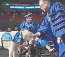 La ceremonia de graduación de una joven junto a su perro guía conmocionó a los estudiantes de la Universidad de South Orange, Nueva Jersey, luego de recibir el reconocimiento por haber concluido sus estudios.