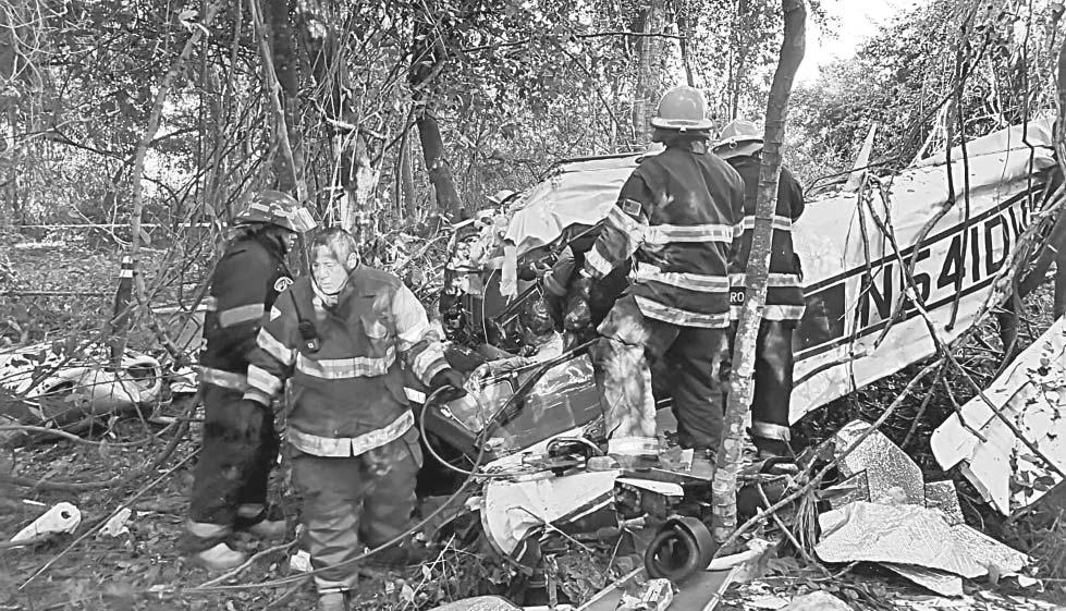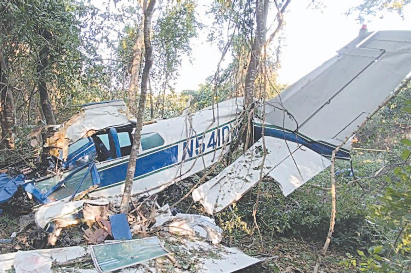 En las imágenes compartidas por la dependencia, se muestra cómo los elementos de rescate se encuentran en el punto donde el aeroplano se estrelló y se partió por la mitad en una zona con mucha maleza.