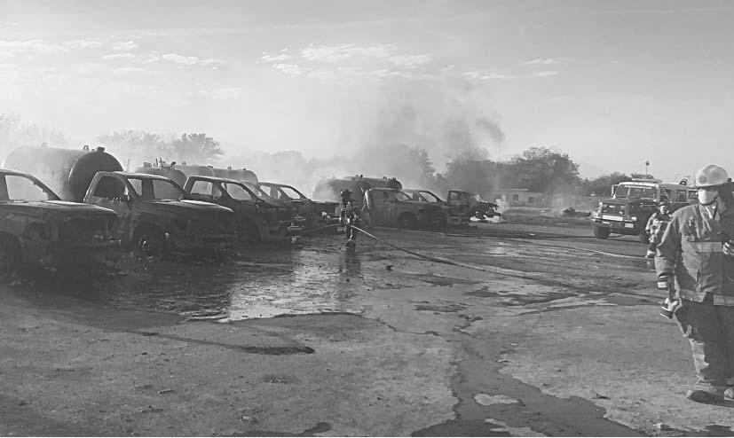 En las labores de control y sofocación del fuego participaron bomberos y personal de diversos cuerpos de auxilio que se apoyaron en 20 unidades. En redes sociales circularon videos donde se observan a las pipas flameando.