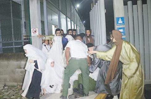 Los hechos se llevaron a cabo después de que un grupo de personas llevó comida a los miembros de su comunidad, cuando los menores de edad y mujeres empezaron a empujar a los guardias de seguridad que cuidaban la puerta principal.