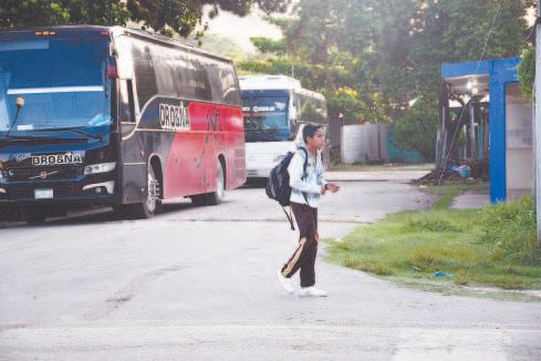 Los migrantes priorizaron sacar a los menores de edad y mujeres a la salida del edifi cio del Centro de Atención al Tránsito Fronterizo (CAIFT) del municipio de Huixtla para incorporarse a la carretera, donde caminaron lentamente en medio de la oscuridad.