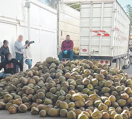 La dependencia también publicó un video en el que se pudo ver que un camión de color blanco, así como una gran cantidad de cocos que fue-