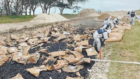 Después de ser identificados, la Fiscalía Especializada de Control Regional (Fecor) de Tamaulipas, en coordinación con elementos de la Secretaría de Marina-Armada de México (Semar) realizaron el conteo, pesaje, incineración y destrucción de las drogas.