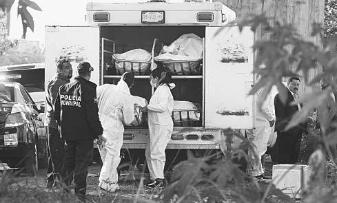 Al lugar arribaron elementos del Escuadrón de Rescate y Urgencias Médicas, ya que automovilistas refirieron que observaron a un hombre tirado sobre el asfalto, debajo del puente en mención, Cuando los paramédicos llegaron, confi rmaron el hallazgo de los tres cuerpos sin signos vitales y determinaron que los cadáveres presentaban huellas de tortura y estaban maniatados.