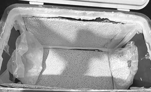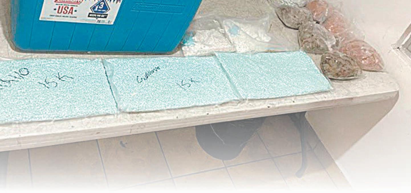 Al pasar el equipaje por el Equipo Fijo de Inspección no Instructiva de Rayos “X”, se detectó al interior de una caja de cartón una hielera que contenía en las paredes cinco bolsas con 58 mil 484 pastillas de posible fentanilo, procediendo a la detención de los dos conductores y al aseguramiento de la droga.