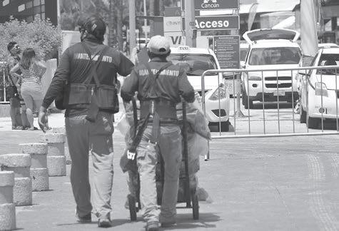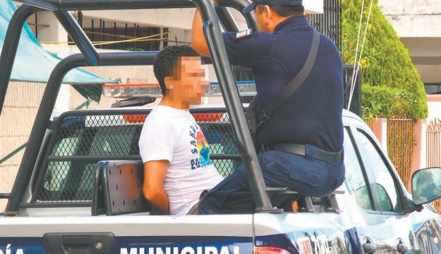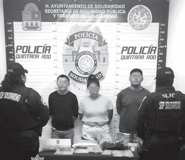 de edad, originario de Yucatán; Samuel “N”, de 21 años de edad, procedente de Tabasco y Josefina “N”, de 34 años, originaria de Guerrero, en posesión de 14 envoltorios con marihuana, 31 con lo que parecía piedra y un arma de plástico, tras ser sorprendidos intercam-