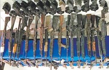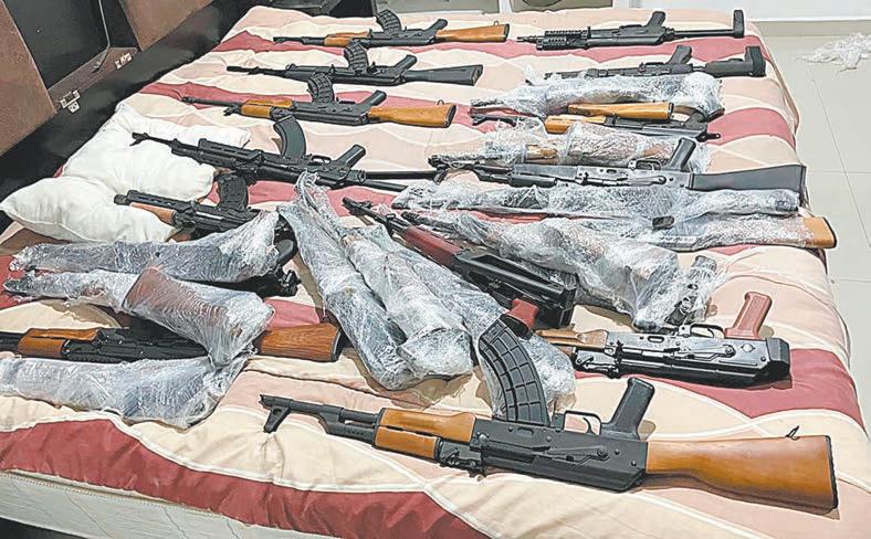 Las fuentes federales explicaron que, tras un cateo a una seguridad, se incautaron 35 fusiles de asalto 47, mejor conocido como cuernos de chivo, 33 cargadores, mil 600 cartuchos calibre 50, capaz de penetrar chalecos antibalas y vehículos blindados, y 2 mil 600 cartuchos calibre 7.72 milímetros, para fusiles de asalto con tipos de repetición.