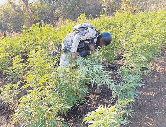 CIUDAD DE MÉXICO.- Elementos de la Guardia Nacional y del Ejército Mexicano localizaron y destruyeron tres sembradíos de aparente mariguana en una zona montañosa de Michoacán, con extensión aproximada de 5 mil 200 metros cuadrados, de acuerdo con un boletín del Gobierno federal.