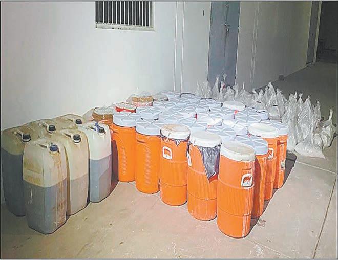 Los mil 380 litros y 483 kilo gramos de posible metanfetamina incautados fueron puestos a disposición de las autoridades para el proceso de investigación.