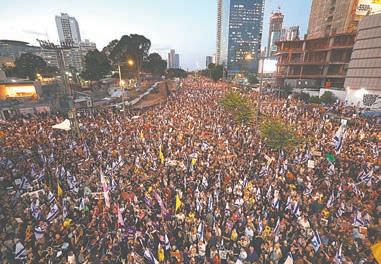 ticiparon en las protestas en todo Israel para pedir un alto el fuego y un acuerdo sobre los rehenes, 550 mil de ellas sólo en Tel Aviv. Los organizadores de la protesta, que describieron a la multitud en Tel Aviv como un “mar interminable de manifestantes”, dijeron