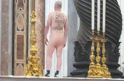 Según Vatican News, un hombre polaco calvo se entró en el templo a la hora del cierre, se desnudó, saltó y subió el altar.