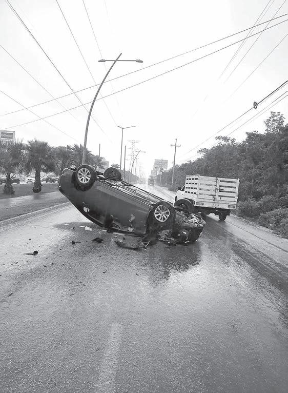 El asfalto mojado y la falta de precaución generan dos aparatosas volcaduras en Puerto Cancún y Av. Huayacán