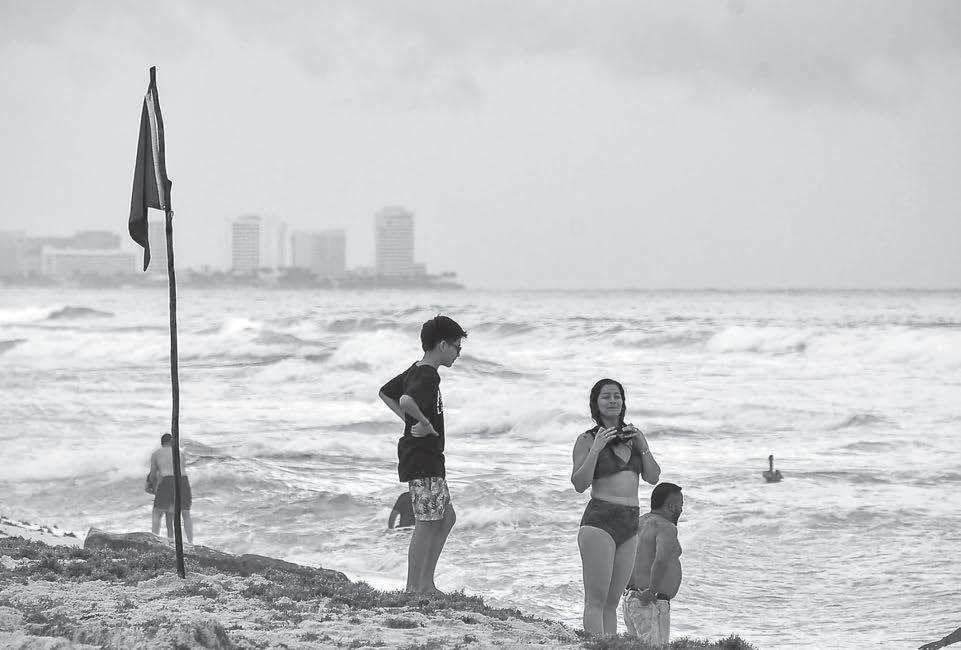 El mal clima provocado por el Frente Frío Número 28, que afecta a la región, no fue suficiente para ahuyentar de las playas de Cancún a decenas de turistas que pese a las banderas rojas y la baja temperatura, no perdieron la oportunidad de meterse al mar + El Estado 3