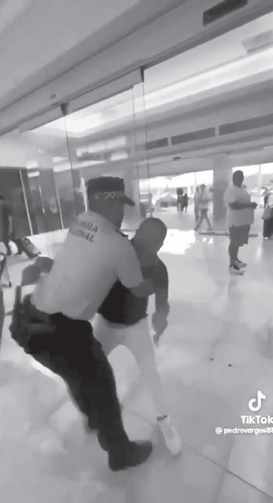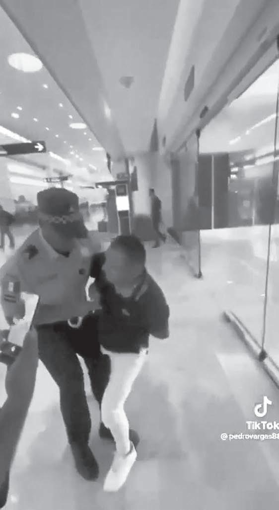 grabación se logra ver, casi al finalizar como el trabajador del volante logra salir corriendo hacia el área de acenso y descenso mientras el uniformado corría tras él y otro hombre se lo impedía.