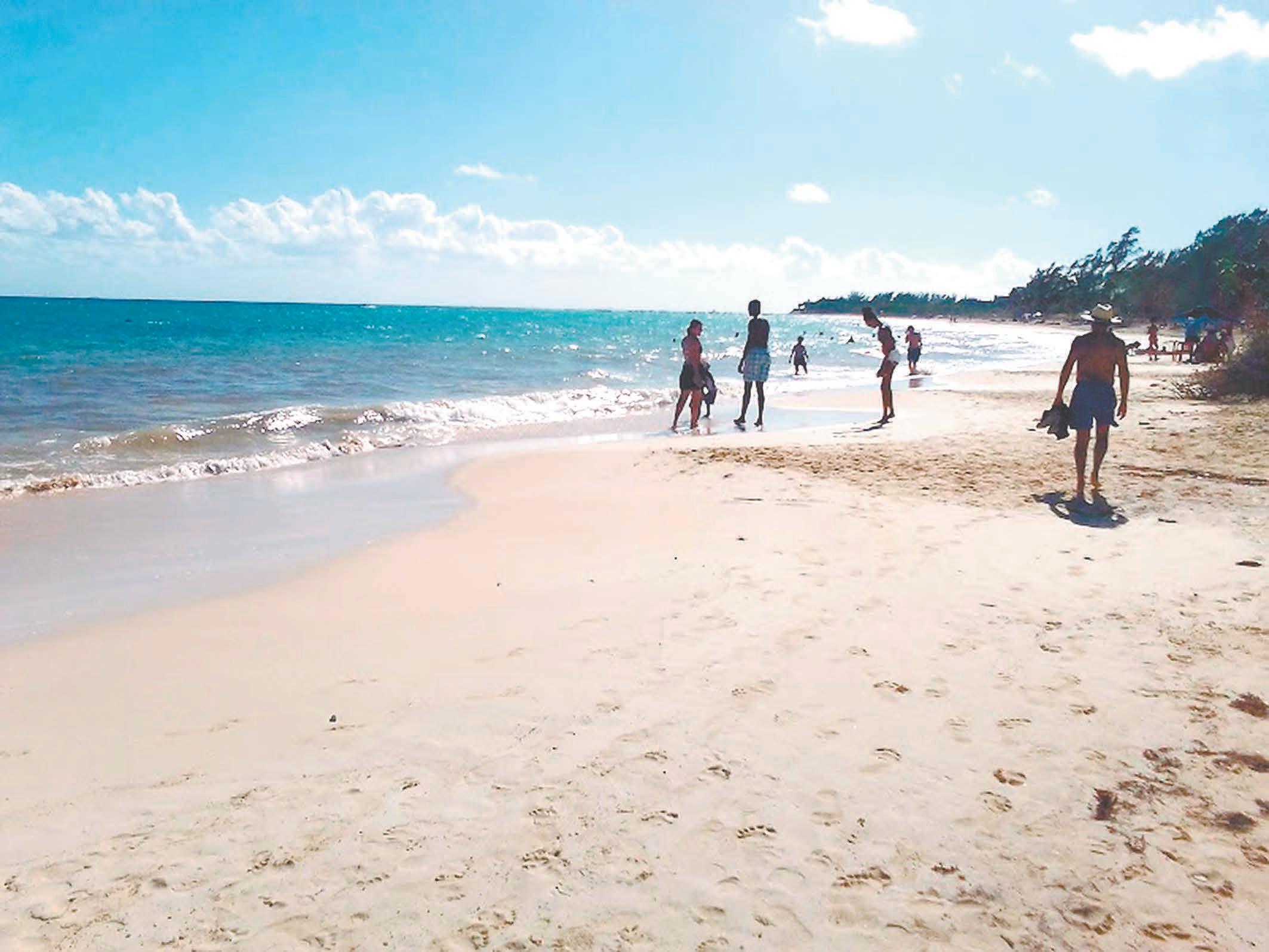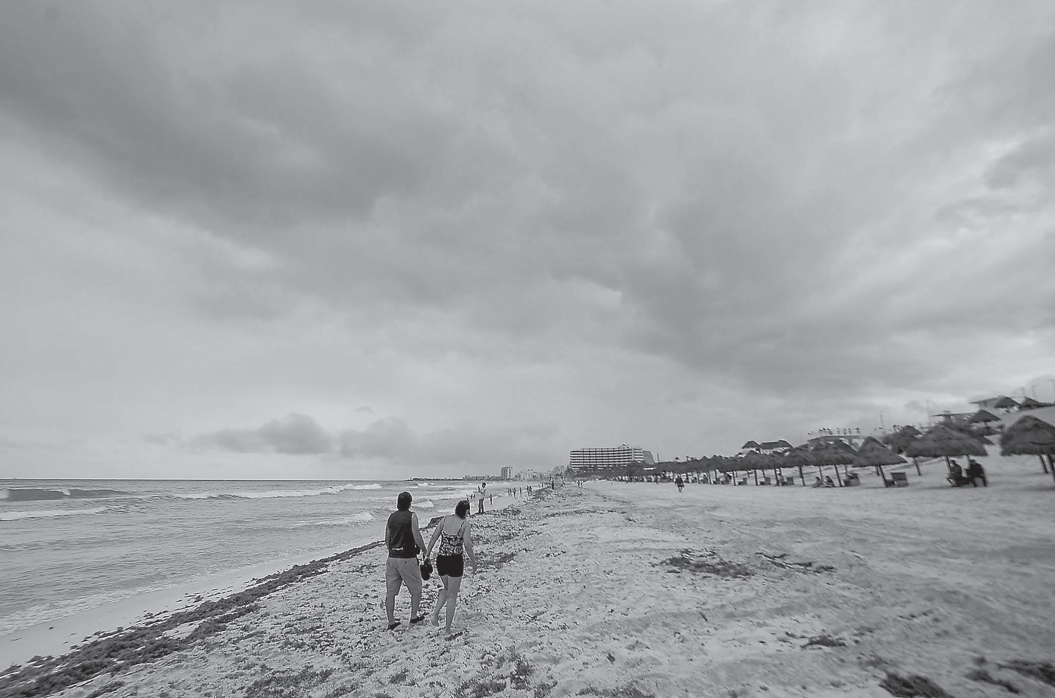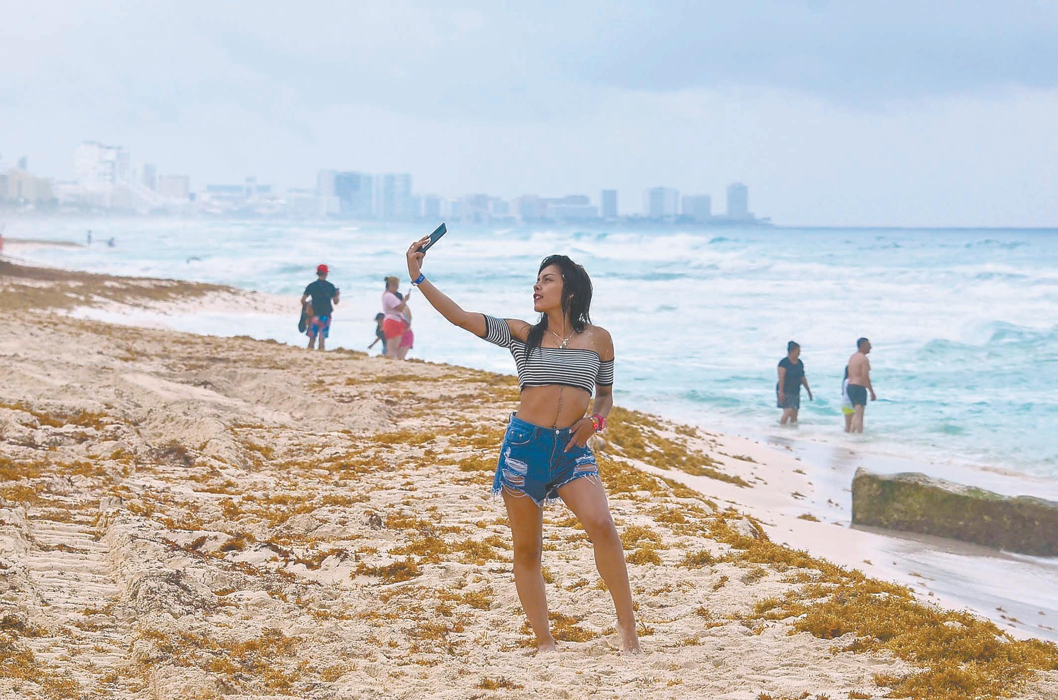 A pesar de la constante amenaza de lluvias, los asistentes disfrutaron y se tomaron fotos a la orilla del Caribe Mexicano, donde también comienza a verse el recale de sargazo, aunque en poca cantidad, que no causó molestia entre los bañistas. Algunos prefirieron mantenerse en la arena para tomarse fotos o contemplar el horizonte. (Mario Hernández)
