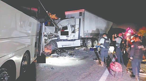 Choque entre autobús, tráiler y camión de carga deja cinco muertos