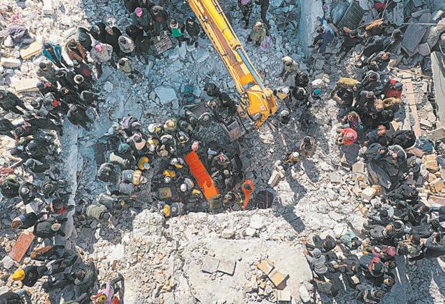 ENTRE las ruinas de la localidad siria de Jindires, los socorristas encontraron a una bebé, nacida bajo los escombros y todavía unida por el cordón umbilical a su madre fallecida.- (AFP)