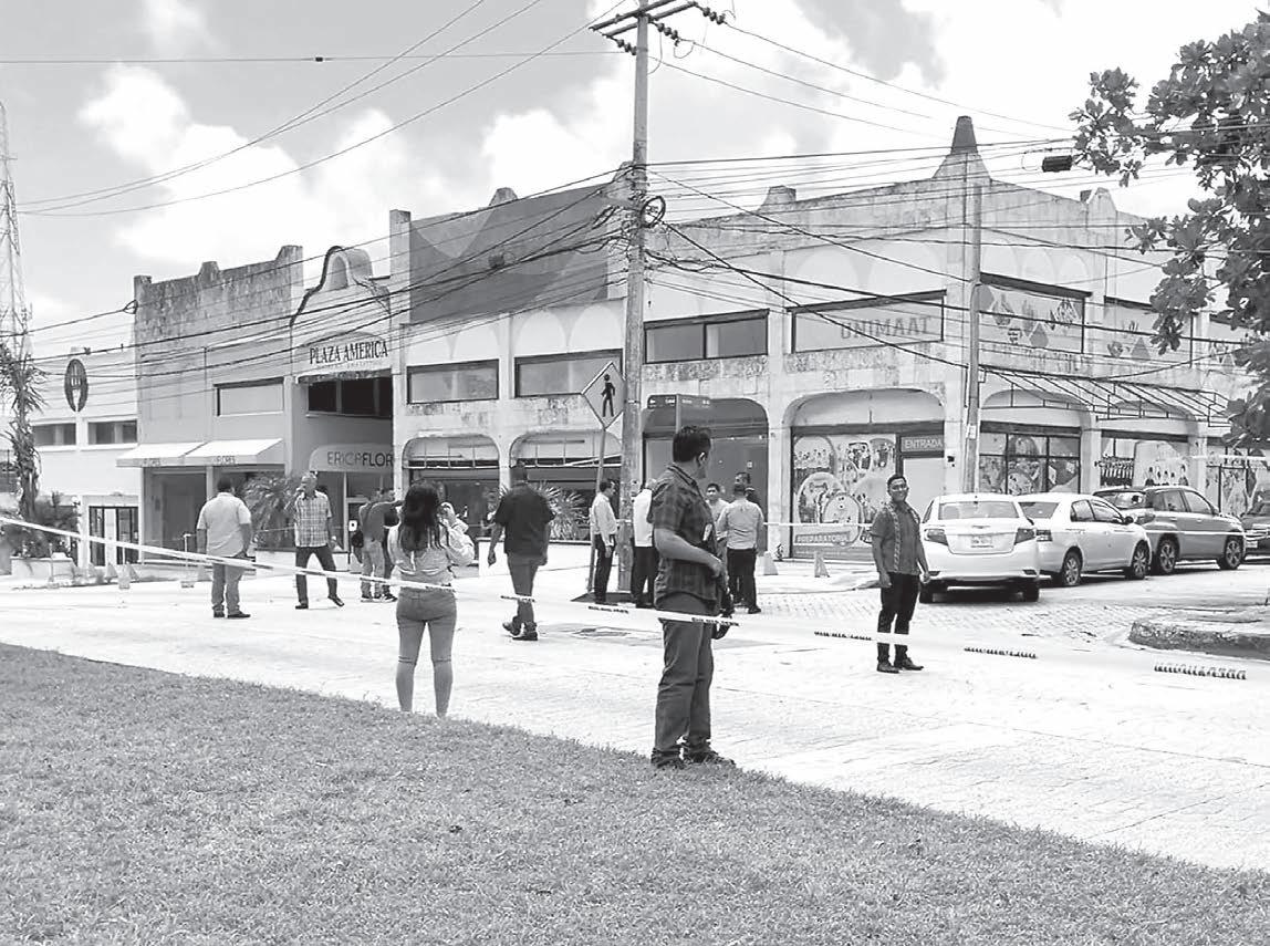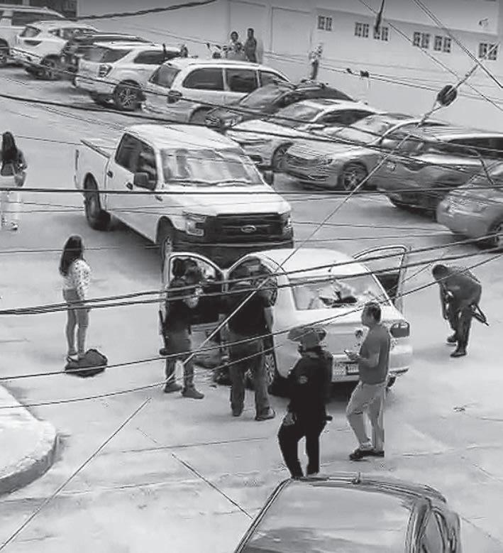 TESTIGOS confirmaron que los asaltantes emboscaron a un trabajador de una casa de cambio y a su escolta, desatando el enfrentamiento entre la avenida Bonampak y la glorieta de “El Ceviche”. Aterrorizados se lanzaron al suelo y se refugiaron detrás de sus vehículos para evitar ser alcanzados por alguna bala perdida. )