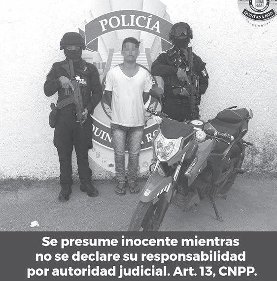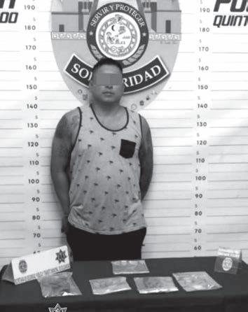Horas después, los uniformados detuvieron a Jairo “N”, de 25 años de edad, originario de Veracruz, luego de sorprenderlo parado junto a una motocicleta marca Italika , tipo D125 , manipulando posibles drogas, mismo que tenía en su posesión dos envoltorios con lo que parecía la droga llamada cristal y uno con posible marihuana, en las avenidas Chich, entre Luis Donaldo Colosio y CTM